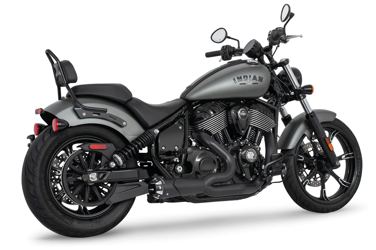 Fits 2022 to present Indian Chief Bobber, Chief Classic, Chief Dark Horse, Chief Standard, Chief Vintage and Super Chief, Black Combat Shorty 2-into-1 with sculpted black American Outlaw end cap