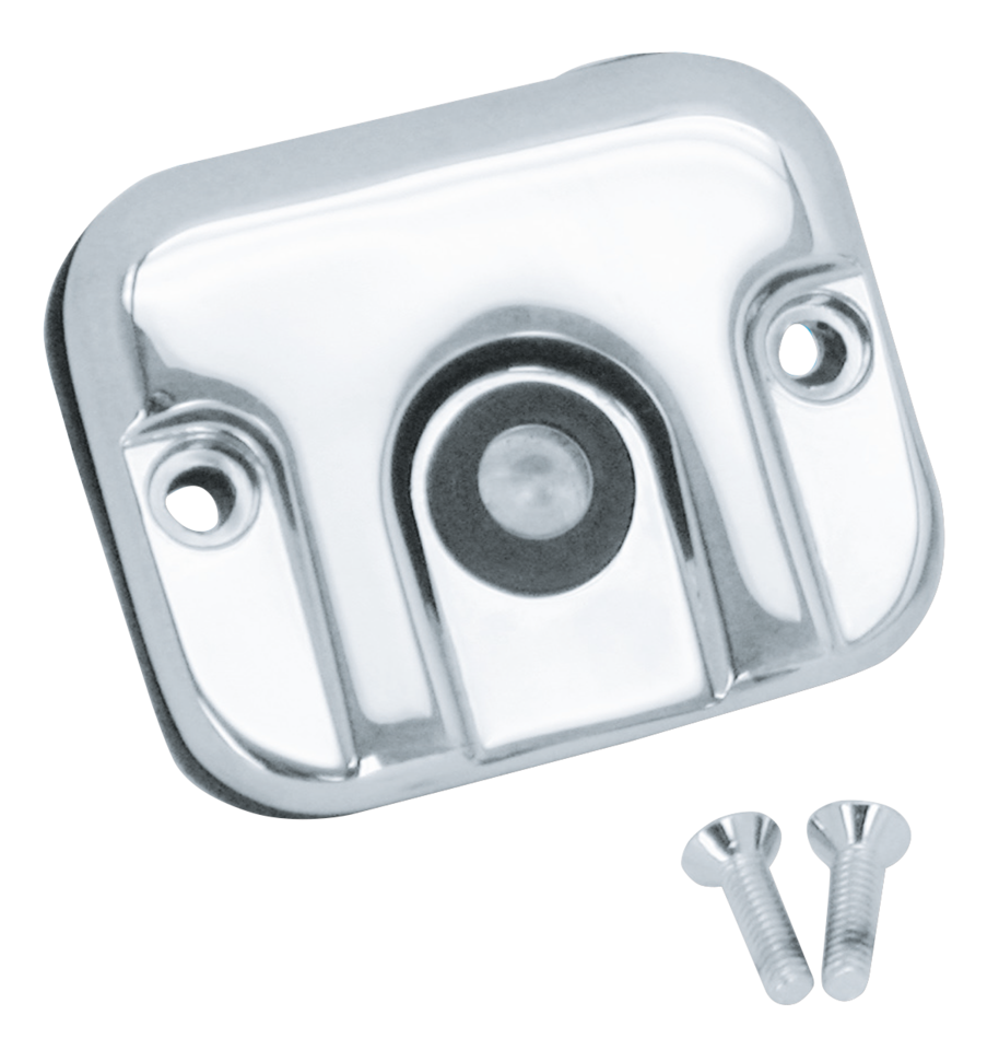 This chromed cover adds a highlight to your black front brake master cylinder. Will also fit the clutch master cylinder on models equipped with a stock style hydraulic clutch master cylinder. Comes complete with gasket, fluid level view glass and mounting screws. Fits Evolution Big Twin 1996 thru 1999, and Sportster models 1996 thru 2003 (OEM 45004-96A).