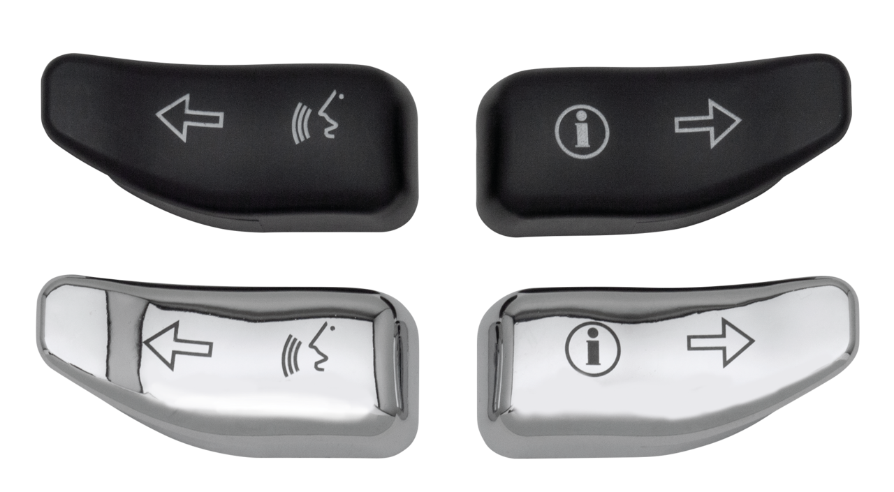 These turn signal extension caps allow you to easily activate the handlebar turn signal switches without repositioning or removing your hands from the grips and improve the feel when wearing gloves. The one-piece design features a contoured thumb extension that places the left and right hand signal control in a comfortable position. The thumb extensions replace the stock turn signal switch caps without re-wiring. Sold in sets with left- and right side extension knobs.