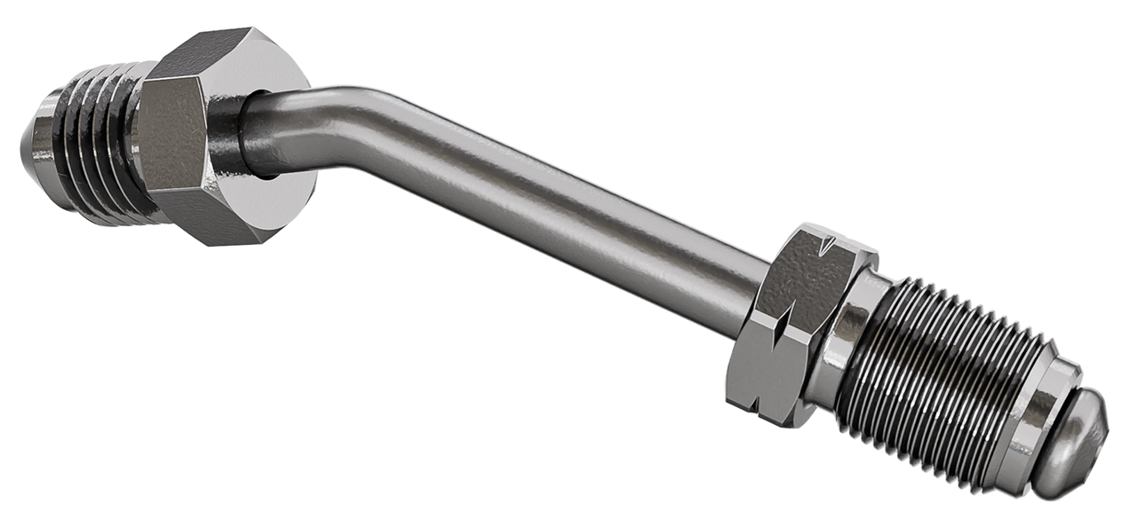 Stainless steel, fits hydraulic slave cylinder on 2017 Twin Cam and 2017 to present Milwaukee Eight, M10x1 to 3/8-24 AN-3