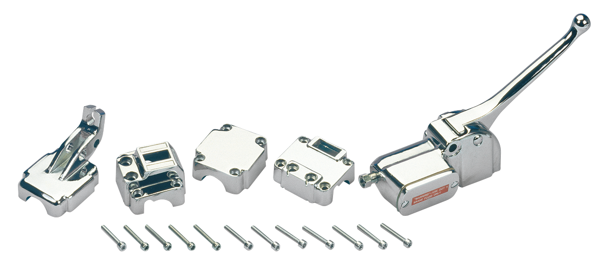 Fits FL & FLH 1973-1981, Sportster 1973-1981 and FX, FXE, FXEF, FXB, FXS and FXWG 1973-1981. Can also be used on FL & FLH 1972 hand shift models when used with the OEM left switch housing back panel with integrated mirror bracket. Kits include 3/4" bore brake master cylinder for single and dual disc models, brake hose fitting, switch housings with screws, clutch lever with pivot pin and perch, decal kit and screws. Switches and related hardware are not included but available separately.
